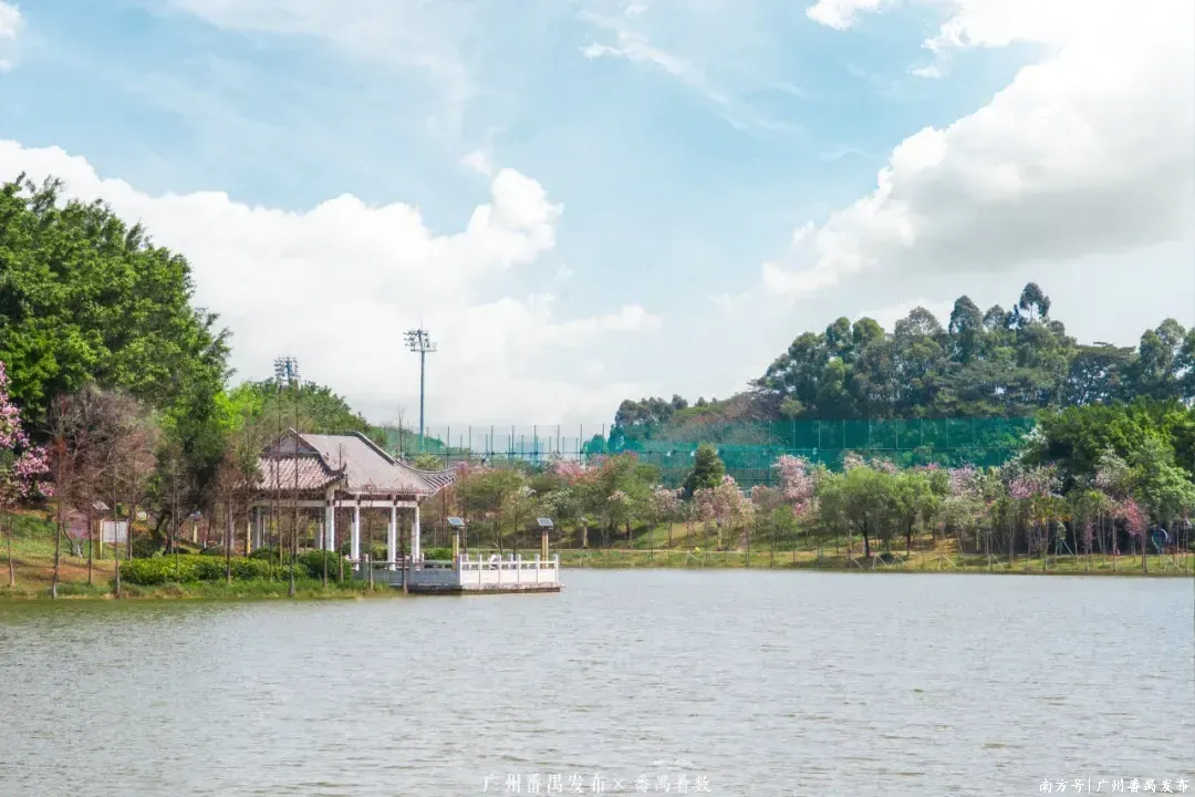 从大学城南站D出口出发,步行约15分钟,便能抵达充满生活气息的中心湖公园。