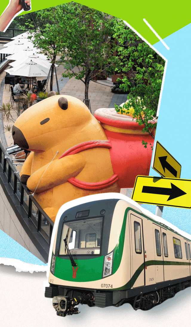 商场门口矗立着潮玩艺术家Sooya量身定制的10米巨型Ban形象雕塑;“叠翠谷”中,两只高大的长颈鹿艺术雕塑栩栩如生,随便一拍都超有感觉,出片率极高!